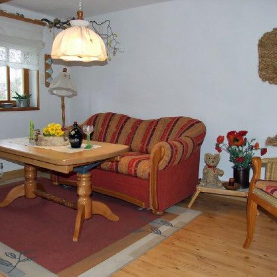 Das Wohnzimmer ist ausgestattet mit SAT-TV, Video, Telefon und HiFi-Anlage. Die Schlafcouch bietet Ihnen eine alternative Übernachtungsmöglichkeit. Sie wurde entsprechend den Kriterien des Deutschen Tourismusverband mit 4 Sternen ausgezeichnet.