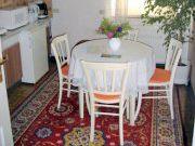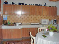 Die 62 qm Ferienwohnung ist für 2 bis max. 6 Personen geeignet. Das Schlafzimmer verfügt über ein Doppelbett und zwei Einzelbetten sowie einen Tisch mit vier Stühlen. Auf Wunsch ist eine Aufbettung für ein Kinderbett möglich. Im Wohnzimmer mit Satellitenfernsehen gibt es zusätzliche Schlafmöglichkeiten für zwei Personen. Weiterhin stehen Ihnen eine Küche mit Kühlschrank, Spüle, Kaffeemaschine, kleinem Elektroherd, Wasserkocher, Toaster, Mikrowelle, Eierkocher und Esstisch zur Verfügung. Ein Kinderstühlchen ist vorhanden. Bad und WC sind räumlich voneinander getrennt (siehe auch Grundriss). Sehr gern können Sie sich auch in unserem Garten erholen, eine Sitzecke mit Grill sowie Liegestühle stehen für Sie bereit. |