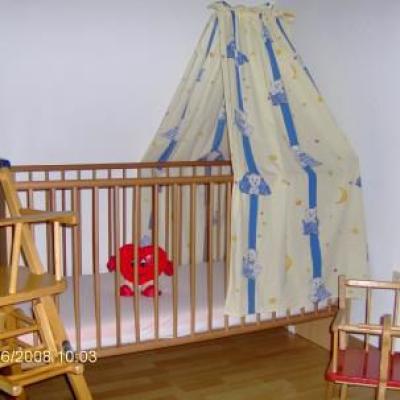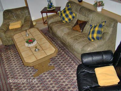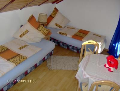 Mit ca. 85 qm bietet die Ferienwohnung Übernachtungsmöglichkeit für bis zu 6 Personen. Einbauküche mit 4 Plattenherd - Kühlschrank - Backofen - Spülmaschine - Kaffeemaschine - Mikrowelle - Sat-TV - Radio - Du/WC - Eckbadewanne - Parkplatz - Balkon - Garten mit Gartenmöbeln - Grillmöglichkeit - 1 Wohnstube - 2 Schlafzimmer - 1 Badezimmer - 1 Küche - 1 Doppelbett - 2 Einzelbetten - 2 Zustellbetten - 2 Babybetten.