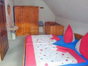 In der Ferienwohnung mit ca. 60 qm finden 2 bis 4 Personen platz. Unsere kinderfreundliche Ferienwohnung hat einen Wohnraum mit TV, zwei Schlafräume eine separate Küche und eine Bad mit Dusche und WC. Bettwäsche und Handtücher sind vorhanden. PKW-Parkplatz am Haus. |