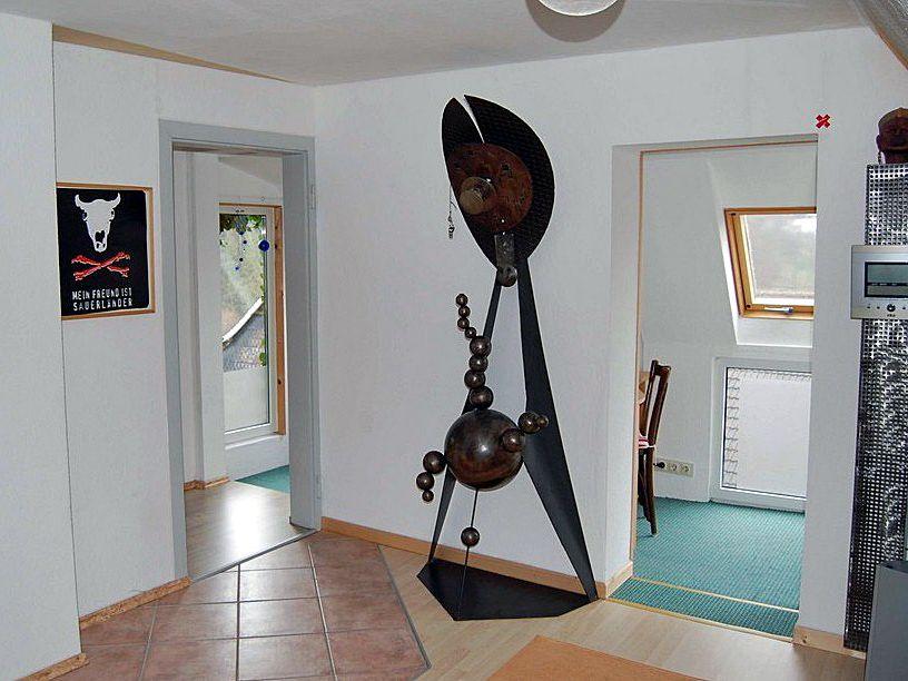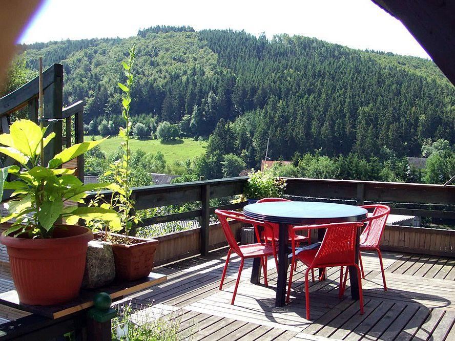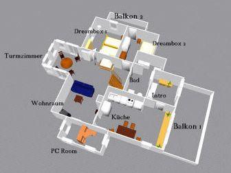 Kurz notiert: Eingangsbereich ist der Garderobeabstellschuhundrümpelraum -- Moderne und sehr gut ausgestattete Küche mit großem Esstisch -- Wohnzimmer mit gemütlichem Wohnbereich und Kaminofen -- Turmzimmer mit 222 Gradblick über das Dorf. Wirkt wie ein kleiner Wintergarten da 9 Fenster auf 6 qm. -- Knuffiger PC Raum incl. Rechner & W-Lan + Telefon -- 1. Schlafzimmer "Dreambox“ für 2 Personen mit Doppelbett (200 x 180) -- 2. Schlafzimmer für 1 oder 2 Personen mit Franz. Bett (200 x 140) -- 3. Schlafzimmer ist "Ganz Oben" für 1oder 2 Personen. Nur im Baum schlafen ist näher am Himmel mit Franz. Bett (200 x 140) -- Bad mit Dusche, WC und Waschmaschine -- 1. Großer Balkon zum Relaxen und umgugge mit natüre püre Ausblick -- 2. Balkon für die Abendsonne mit Wibbelbank -- Garten mit Hütte, Wiese zum Grillen und Spielen. Ein Kuntergrüner Allzweckbereich mit Platz für alle. |