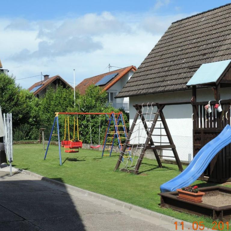 Für die Bedürfnisse unserer kleinen Gäste steht ein Spielplatz mit Sandkasten, Spielturm mit Rutsche, Schaukel, Baskettballkorb sowie ein Sandkasten bereit.